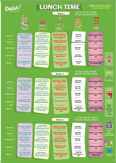 Concordia Academy meals are prepared and served by Havering Catering Services. Allergen and Carbohydrate information can be viewed by clicking here. Menu November 2025 - March 2026 Concordia AW25 Menu